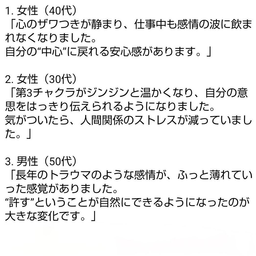 • 高次の自己(ハイヤーセルフ)とのつながりが深まる