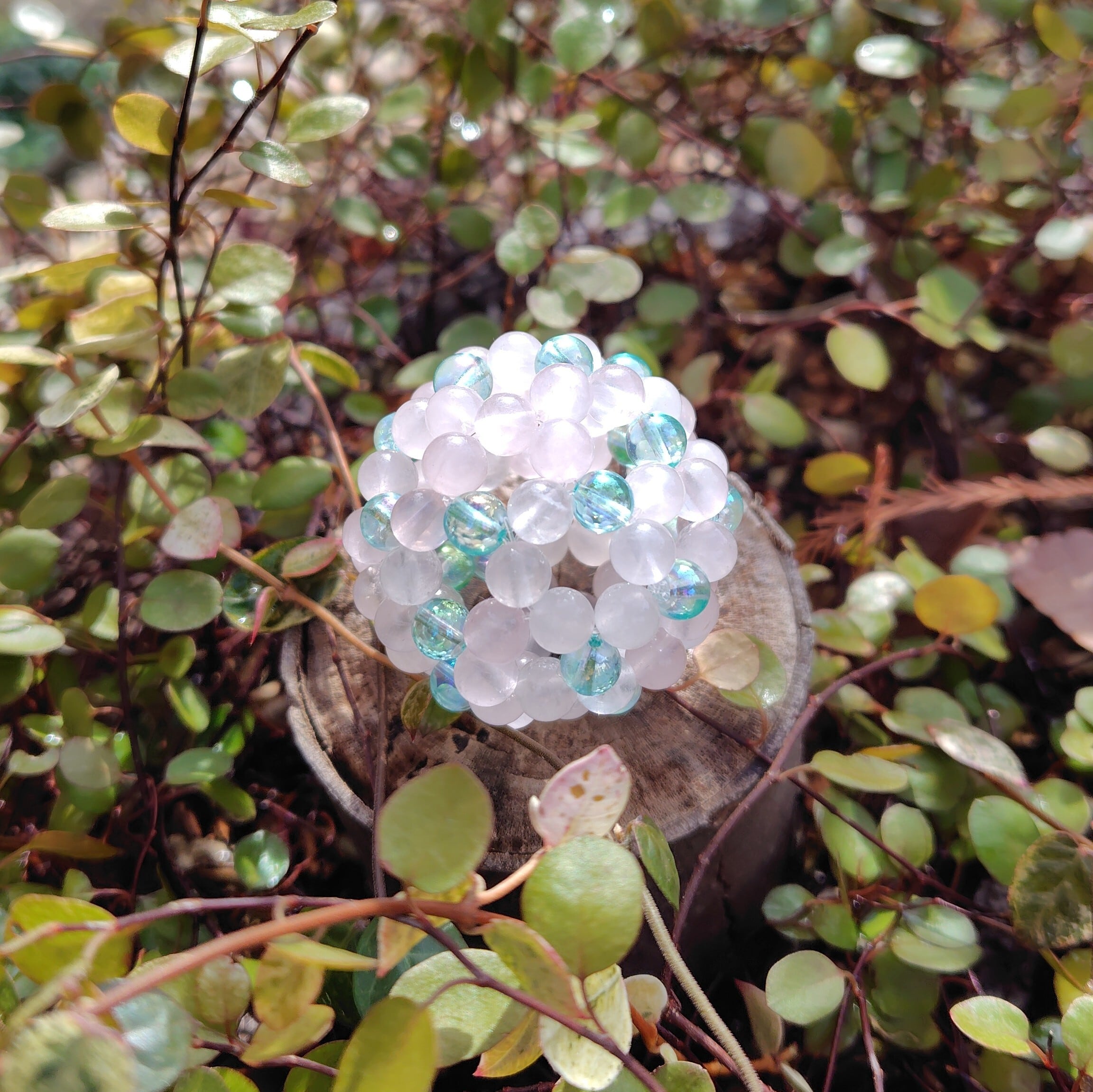 フラーレン天然石:ローズクォーツ ラウンド6mm、アクアオーラクォーツ ラウンド 6mm